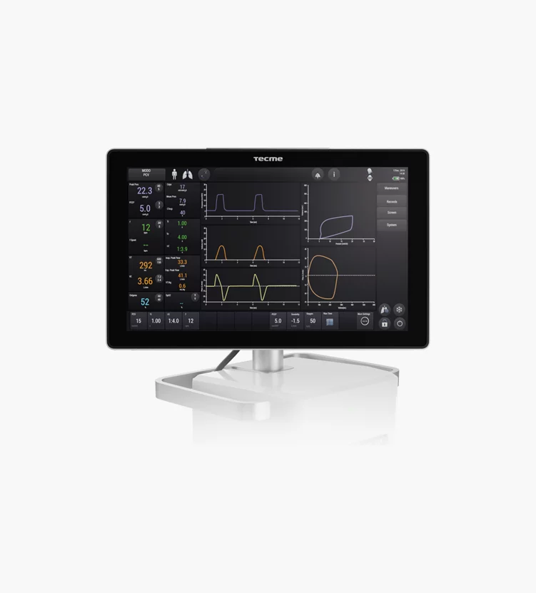Con pantalla táctil de 18” de alta resolución con una interfaz de usuario intuitiva lo convierte en un ventilador fácil y rápido de usar. Con pantalla desmontable y rotativa. Indicador de alarma de alta visibilidad. El diseño del VentBox le permite al usuario montarlo en un pedestal, en un suministro de techo o en un estante. Interfaz de usuario simple y limpia.